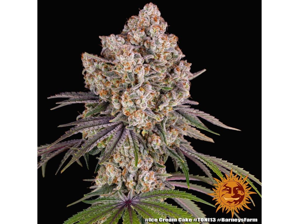 Ice Cream Cake je hybridní odrůda (70 % indica, 30 % sativa) vzniklá křížením Gelato #33 a Wedding Cake. Obsahuje vysoký obsah THC (20–25 %, někdy až 30 %) a nízký obsah CBD (<1 %), což zajišťuje cerebrální a uklidňující účinky doprovázené euforií a pocitem štěstí. Tato odrůda má sladkou chuť krémové vanilky s tóny zemité borovice, zatímco aroma připomíná smetanový sýr, ořechy a zemitost. Dorůstá do výšky 90–110 cm v interiéru a až 150–200 cm venku. Doba kvetení trvá 55–65 dní, přičemž sklizeň venku probíhá ve 3.–4. týdnu září. Výnosy dosahují až 600–700 g/m² v interiéru a až 1500–2000 g/rostlina venku. Ice Cream Cake je oblíbená mezi pěstiteli díky své snadné kultivaci, nádherným fialovým odstínům květů a husté produkci pryskyřice. Ideální pro zmírnění stresu, únavy nebo nespavosti, přičemž poskytuje dlouhotrvající pocit pohody a relaxace.Doplňkové parametry