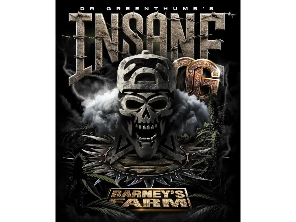 Insane OG je výjimečný výsledek spolupráce Barneys Farm x Dr. Greenthumb (B-Real / Cypress Hill), spojující legendární genetiky OG Kush × Bubba Kush × Granddaddy Purple.
