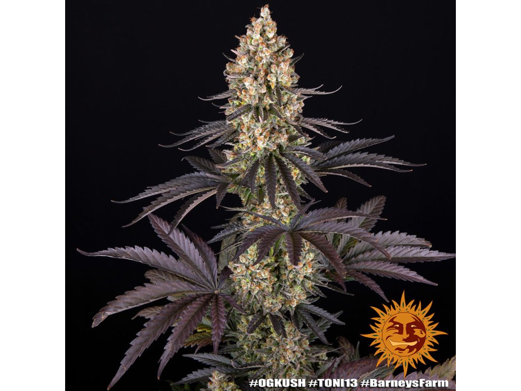 OG Kush je hybridní odrůda (70 % indica, 30 % sativa) vzniklá křížením Chemdawg, Lemon Thai a Hindu Kush. Obsahuje vysoký obsah THC (23–26 %) a nízký obsah CBD (<1 %), což zajišťuje silné cerebrální účinky doprovázené hlubokou relaxací a euforií. Tato odrůda má komplexní chuťový profil zahrnující kyselé citrusy, borovici, bylinky a skunkové tóny, zatímco aroma je štiplavé s nádechem citronu, zeminy a paliva. Dorůstá do výšky 100–120 cm v interiéru a až 150–200 cm venku. Doba kvetení trvá 55–65 dní, přičemž sklizeň venku probíhá ve 3.–4. týdnu září. Výnosy dosahují až 600–700 g/m² v interiéru a až 1500–2000 g/rostlina venku. OG Kush je oblíbená mezi pěstiteli díky své robustnosti, vysoké produkci pryskyřice a schopnosti produkovat husté pryskyřičné květy. Ideální pro zmírnění stresu, bolesti nebo nespavosti, přičemž poskytuje dlouhotrvající pocit pohody a relaxace.