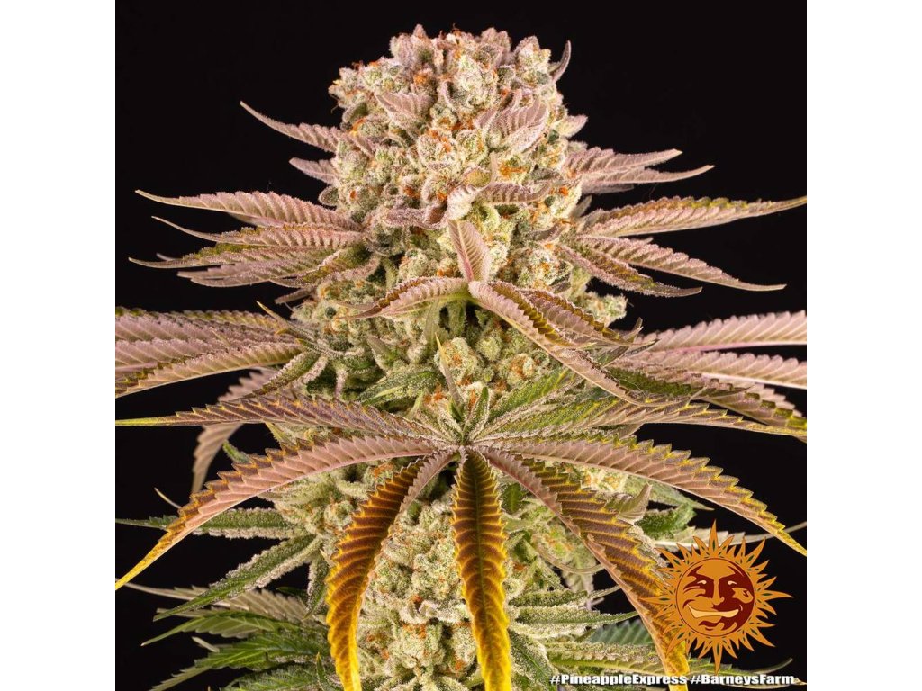 Pineapple Express je hybridní odrůda (60 % sativa, 40 % indica) vzniklá křížením Hawaiian Landrace Sativa a Trainwreck. Obsahuje vysoký obsah THC (20–25 %) a nízký obsah CBD (<1 %), což zajišťuje rychle působící povzbuzující účinky na mozek doprovázené relaxací a pocitem štěstí. Tato odrůda má výraznou chuť citrusů, ananasu a zemitých borovicových tónů, zatímco aroma připomíná čerstvě nakrájený ananas s tropickými podtóny. Dorůstá do výšky 120–140 cm v interiéru a až 180–250 cm venku. Doba kvetení trvá 60–65 dní, přičemž sklizeň venku probíhá v 1.–2. týdnu října. Výnosy dosahují až 600–700 g/m² v interiéru a až 1500–2000 g/rostlina venku. Pineapple Express je oblíbená mezi pěstiteli díky své snadné kultivaci, vysoké produkci pryskyřice a hustým květům. Ideální pro zmírnění stresu, únavy nebo deprese, přičemž poskytuje dlouhotrvající energii a pozitivní náladu.