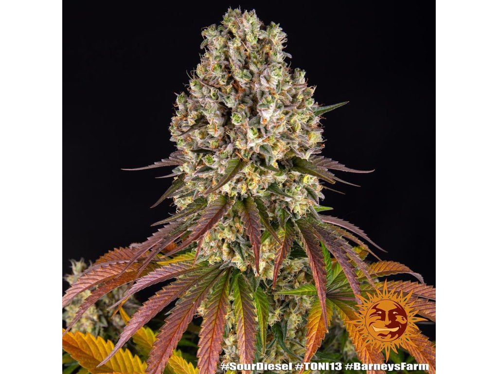 Sour Diesel, známý také jako "Sour D," je hybridní odrůda (70 % sativa, 30 % indica) vzniklá křížením Super Skunk a Chemdawg. Obsahuje vysoký obsah THC (20–26 %) a nízký obsah CBD (<1 %), což zajišťuje rychle působící energizující účinky doprovázené euforií a relaxací. Tato odrůda má výraznou chuť citrusů, koření a zemitého dieselu, zatímco aroma je kyselé, zemitě dieselové s pikantními citrusovými tóny. Dorůstá do výšky 100–120 cm v interiéru a až 150–200 cm venku. Doba kvetení trvá 70–75 dní, přičemž sklizeň venku probíhá ve 2.–3. týdnu října. Výnosy dosahují až 600–700 g/m² v interiéru a až 1500–2000 g/rostlina venku. Sour Diesel je oblíbená mezi pěstiteli díky své robustnosti, vysoké produkci pryskyřice a schopnosti produkovat husté květy s intenzivním aroma. Ideální pro zmírnění stresu, únavy nebo deprese, přičemž poskytuje dlouhotrvající pocit energie a pozitivní nálady.Doplňkové parametry