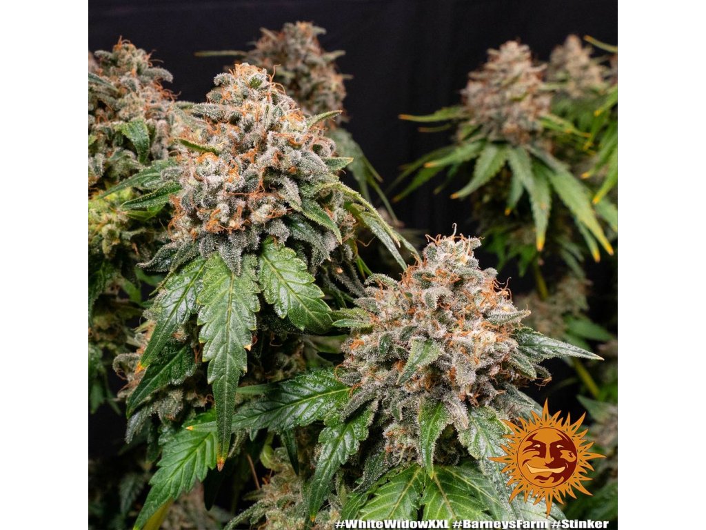 White Widow XXL je hybridní odrůda (75 % indica, 25 % sativa) vzniklá křížením Brazilian a South Indian genetiky. Obsahuje vysoký obsah THC (20–25 %) a nízký obsah CBD (<1 %), což zajišťuje energické, euforické účinky doprovázené relaxací. Tato odrůda má výraznou chuť s tóny ovoce, koření a borovice, zatímco aroma je sladké, ostré a kořeněné. Dorůstá do výšky 100–120 cm v interiéru a až 150–200 cm venku. Doba kvetení trvá 60–65 dní, přičemž sklizeň venku probíhá v 1.–2. týdnu října. Výnosy dosahují až 600–700 g/m² v interiéru a až 2000 g/rostlina venku. White Widow XXL je oblíbená mezi pěstiteli díky své robustnosti, vysoké produkci pryskyřice a hustým květům pokrytým bílými trichomy. Ideální pro zmírnění stresu, únavy nebo deprese, přičemž poskytuje dlouhotrvající pocit pohody a kreativity.Doplňkové parametry