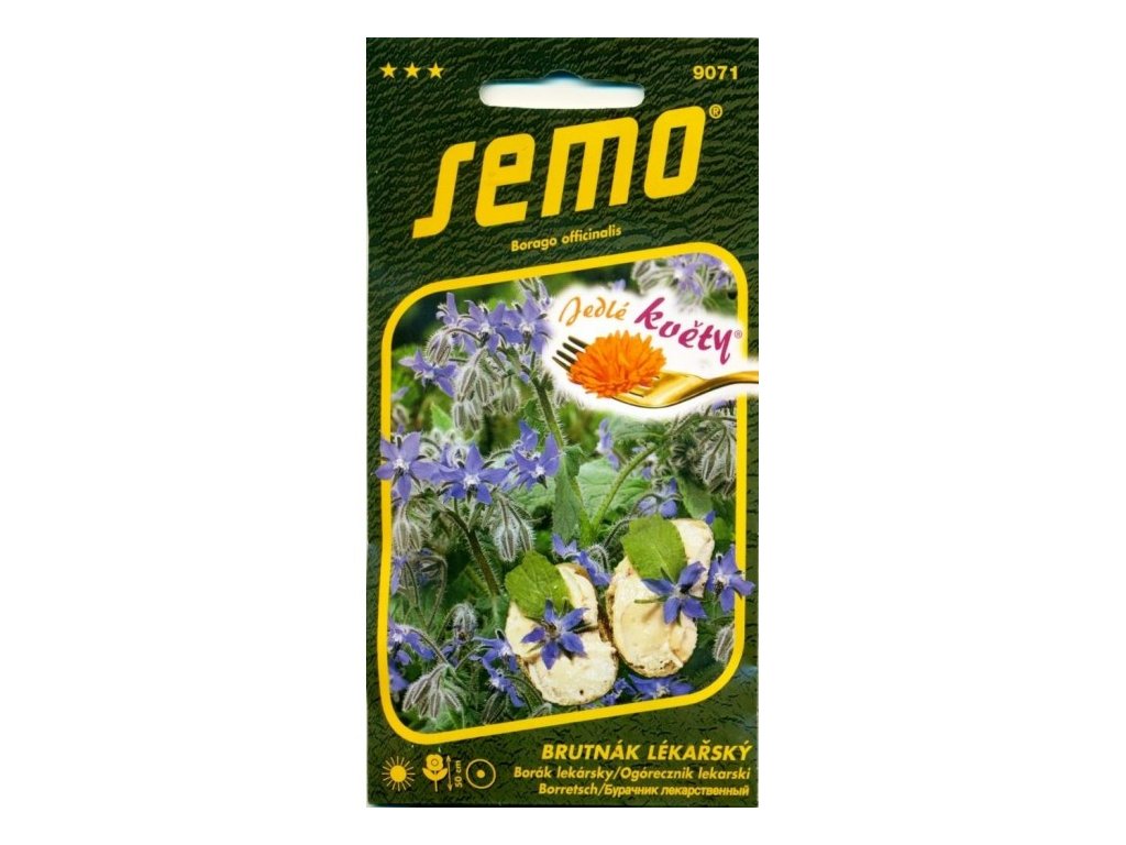 Brutnák lékařský (Borago officinalis) je jednoletá bylina, dorůstající výšky 60–80 cm, s modrými květy kvetoucími od června do srpna. Pěstuje se na slunném stanovišti s propustnou půdou. Semena se vysévají do hloubky 0,5–1 cm, do řádků vzdálených cca 20 cm, s dobou klíčení 7–14 dní. Brutnák je známý svými léčivými účinky, včetně podpory nervového systému a močopudných vlastností. Je také vynikající medonosnou rostlinou a vhodný jako zelené hnojení.Doplňkové parametry