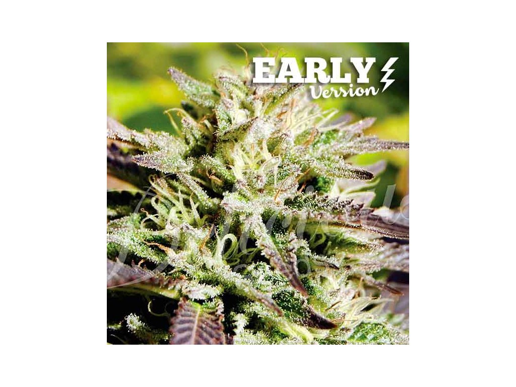 Cotton Candy Kush - Early Version od Delicious Seeds je rychle kvetoucí verze této oblíbené odrůdy. Tento hybrid (65 % sativa, 25 % indika, 10 % ruderalis) vznikl křížením Lavender, Power Plant a Ruderalis. Obsah THC dosahuje až 23 %, přičemž doba kvetení trvá pouhých 45 dní. Rostliny produkují velká a dlouhá poupata s kovově levandulovým odstínem na listech ke konci květu. Aroma je velmi intenzivní, citrusové, připomínající grapefruit, zatímco chuť je sladká jako cukrová vata. Účinky jsou euforické, energické a dlouhotrvající – ideální pro denní užití nebo kreativní činnosti. Výnosy dosahují přes 600 g/m² v interiéru a až 1500 g na rostlinu venku. Tato odrůda je snadno pěstovatelná, vysoce odolná vůči škůdcům a stresu, což ji činí ideální volbou pro začátečníky i zkušené pěstitele hledající rychlé sklizně s vynikající kvalitou.