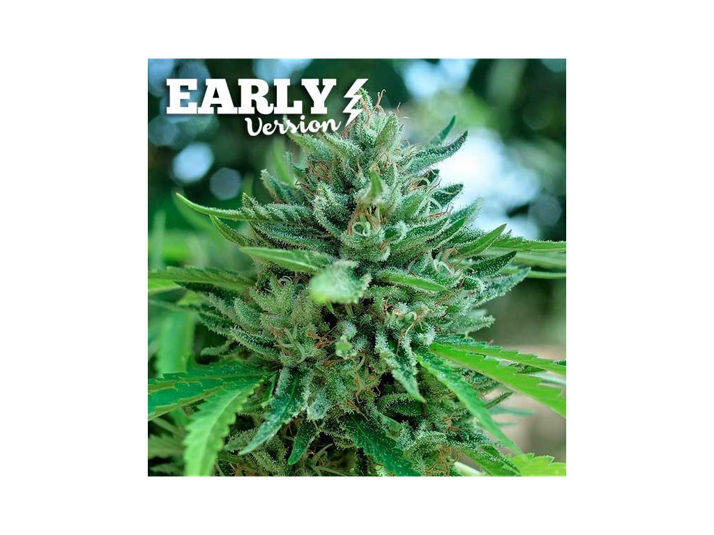 Early Version je ultra rychle kvetoucí hybrid s intenzivním aroma sušenek, čaje Earl Grey a zemitými tóny, vysokým obsahem THC a euforickými účinky, ideální pro indoor i outdoor pěstování.