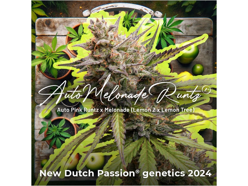 Melonade Runtz od Dutch Passion je prémiová fotoperiodická odrůda vzniklá křížením Melonade (Lemon Z x Lemon Tree) a Runtz (Zkittlez x Gelato). Tento hybrid (50 % indika, 50 % sativa) nabízí vysoký obsah THC (20–25 %, v optimálních podmínkách i více) a dobu kvetení 9–10 týdnů. Rostliny dorůstají střední výšky a produkují husté, pryskyřičné květy s intenzivním aroma citrusů, tropického ovoce, krémových a těstových tónů. Účinky jsou silné, dlouhotrvající – kombinují relaxační tělesný efekt s mírným "head high", ideální pro večerní užití nebo odpočinek. Výnosy dosahují až 400–450 g/m² v interiéru a přibližně 500 g na rostlinu venku za optimálních podmínek. Melonade Runtz je snadno pěstovatelná odrůda vhodná pro SOG techniky i přirozený růst. Doporučuje se podpírání větví během pozdní fáze kvetení kvůli váze květů. Díky svému jedinečnému terpenovému profilu, robustnímu růstu a krásnému vzhledu je ideální volbou pro milovníky špičkových "Cali" genetik.Doplňkové parametry