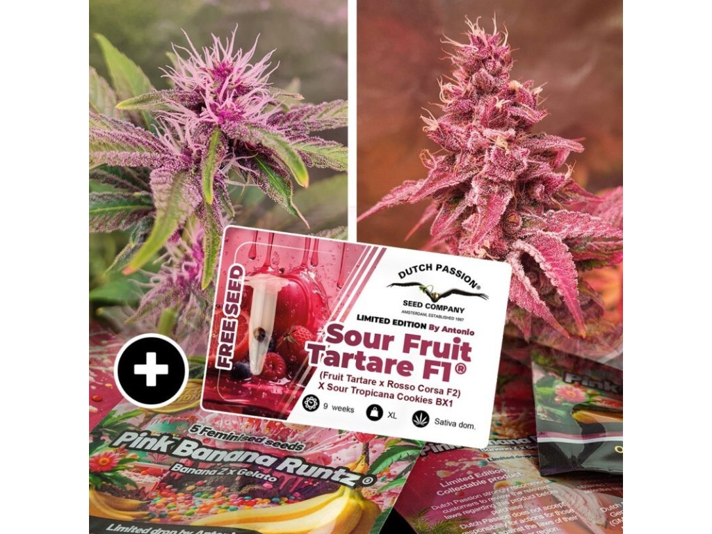 Pink Banana Runtz je ideální volbou pro ty, kdo hledají moderní americkou genetiku s maximální chutí, vysokým výnosem a silou. Kombinuje estetiku, výkon i charakter a představuje jednu z nejpovedenějších novinek z dílny Antonia a Dutch Passion.