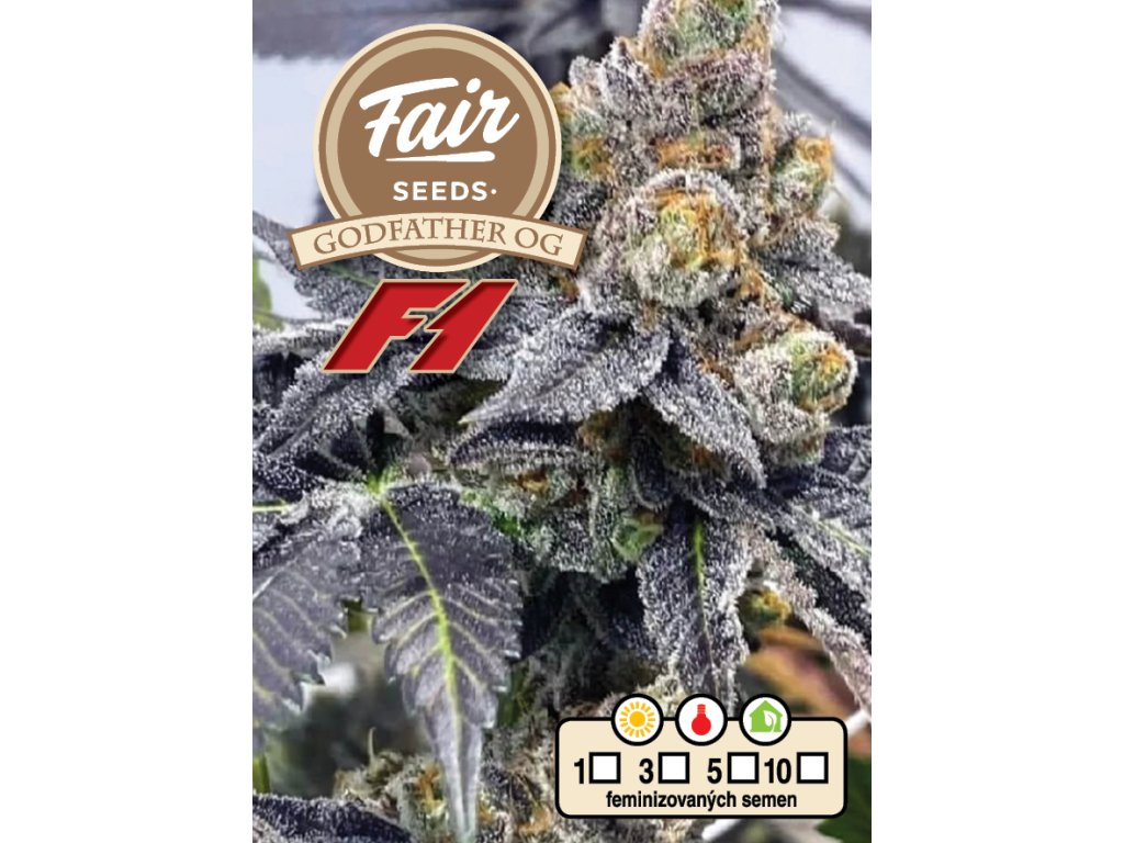 Godfather OG F1 je 60% indika / 40% sativa hybrid s THC obsahem 26–30?%. Nabízí aroma kombinující ovocné, sladké a dřevité tóny. Doba květu je 8–10 týdnů, s výnosem až 550–600?g/m? indoor a 450?g/rostlinu outdoor. Uživatelé oceňují euforické a relaxační účinky, ideální pro večerní použití.