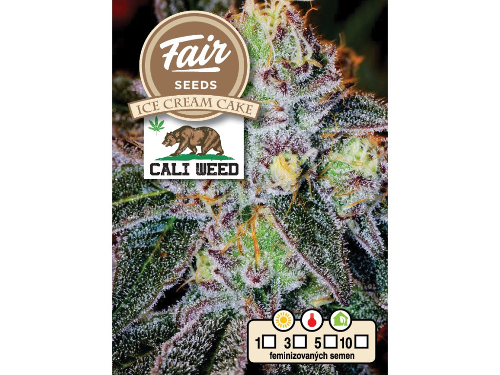 Ice Cream Cake je feminizovaná odrůda vzniklá křížením Wedding Cake x Gelato #33. Tento indika-dominantní hybrid nabízí krémové aroma s tóny vanilky a sladkého pečiva. Doba kvetení je přibližně 60 dní, s výnosy až 500 g/m? indoor a 700 g/rostlinu outdoor. Rostlina dosahuje střední výšky a je vhodná pro pěstování v mírném klimatu. Účinky jsou relaxační a euforické, ideální pro večerní použití.Doplňkové parametry