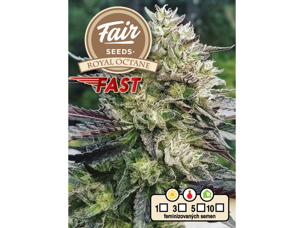 Royal Octane Fast je 60% indika / 40% sativa hybrid s genetikou Jet Fuel Gelato x Royal Spill. Nabízí aroma kombinující diesel, zemitost a sladkost. Doba květu je 8–9 týdnů, s výnosem až 550?g/m? indoor a 850?g/rostlinu outdoor. Uživatelé oceňují relaxační účinky, ideální pro večerní použití.
