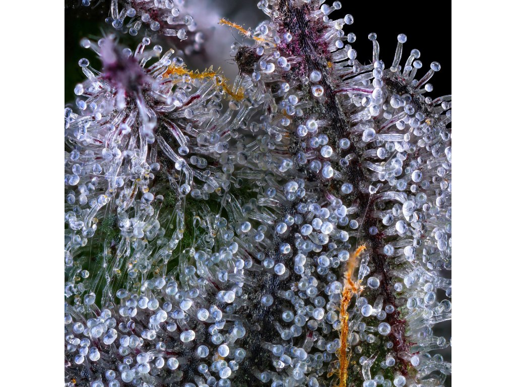 Grape Amrita vznikla křížením Grape Ambrosia a Blue Lotus (Blue Gelato 41 x XXX OG) a přináší indika-dominantní genetiku s pestrou škálou fenotypů. Tato odrůda se vyznačuje výrazným aroma hroznových bonbonů, vanilky, paliva a citrusů. Doba kvetení trvá přibližně 60–63 dní a rostliny produkují střední výnos s bohatým pokrytím trichomy. Fenotypy s převahou Grape Ambrosia tvoří fialové květy s krémovým ovocným profilem, zatímco výraznější vliv Blue Lotus přináší vyšší rostliny, širší kalichy a kombinaci muskusu, borůvek a koření. Obsah THC se pohybuje mezi 24–29 %, účinky kombinují euforii a relaxaci celého těla, přičemž některé fenotypy působí více sedativně, jiné se hodí i pro denní použití. Grape Amrita zaujme pěstitele, kteří hledají vůni, pryskyřici a vzhled, který zaujme i v sáčku.