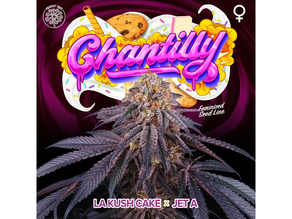 Chantilly je feminizovaný indika-dominantní hybrid s genetikou L.A Kush Cake x Jet A, který vyniká kompaktním růstem, obrovskou produkcí pryskyřice a bohatým terpenovým profilem. Rostlina zůstává středně vysoká, ale díky silnému větvení produkuje velké, extrémně husté palice, které jsou kompletně obalené pryskyřicí. Doba květu je 8 týdnů, přičemž výnos závisí na pěstitelských dovednostech, ale doporučuje se vícenásobné toppingování pro maximalizaci produkce květů. Aroma je bohaté a vrstevnaté, kombinuje tóny sušenkového těsta, šlehačky, lískových oříšků a koření, přičemž některé fenotypy se vyznačují intenzivní palivovou složkou s nádechem kardamomu. Obsah kanabinoidů je vysoký, což zajišťuje silné, těžké účinky, ideální pro hlubokou relaxaci a večerní užívání. Díky své mimořádné produkci pryskyřice je Chantilly špičkovou volbou pro extrakce, zejména ice-o-lator a rosin, což potvrzují i její ocenění: 1. místo v Indoor kategorii na Gorilla Verde Cup 2023, 1. místo v Seed kategorii na Canna French Cup 2023 a 1. místo v Ice-o-lator kategorii na Underground French Cup 2023. Tento strain je ideální pro pěstitele hledající prvotřídní genetiku pro extrakce a intenzivní terpenový zážitek.