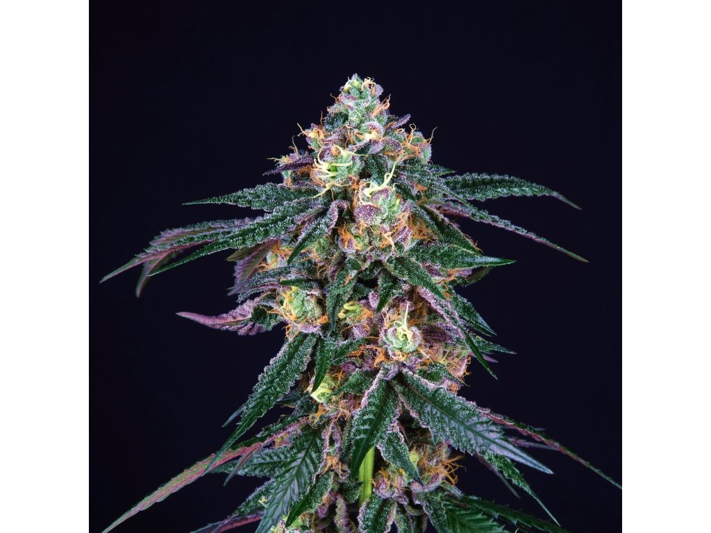 Midnight Sunset je feminizovaný indika-dominantní hybrid s genetikou Sunset Sherbert Bx1 x Jet A, který se vyznačuje rychlým kvetením, vysokou produkcí pryskyřice a intenzivními fyzickými účinky. Doba květu je 7–8 týdnů, přičemž výnos závisí na pěstitelských dovednostech, ale rostlina má silný růst a výrazný stretch během vegetativní fáze – doporučuje se topování pro lepší strukturu. Květy jsou sytě fialové s kontrastními oranžovými pestíky, což vytváří působivý vizuální efekt. Aroma je silně palivové, krémové a osvěžující, přičemž produkuje enormní množství pryskyřice, což z ní dělá ideální volbu pro extrakce. Účinky jsou intenzivně fyzické a hluboce relaxační, perfektní pro večerní odpočinek a uvolnění po dlouhém dni. Tento strain je ideální pro pěstitele hledající silnou indiku s výraznou palivovou vůní, luxusním fialovým vzhledem a prvotřídní produkcí pryskyřice vhodnou pro extrakce.Doplňkové parametry