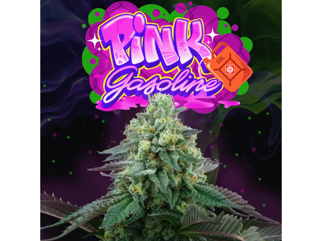 Pink Gasoline je feminizovaný indika-dominantní hybrid s genetikou 33 Splitter x Peach Ozz, který kombinuje silnou strukturu, vysoký výnos a extrémní produkci pryskyřice. Rostlina roste energicky, dosahuje impozantních rozměrů indoor i outdoor a tvoří mohutné, kompaktní palice. Doba květu je 8 týdnů, přičemž rostlina se ideálně vyvíjí s 4týdenní vegetací. Výnos závisí na pěstitelských dovednostech, ale díky své robustnosti a adaptabilitě zvládá různá prostředí a podmínky pěstování. Aroma je extrémně palivové, s dominantními tóny benzínu a gelata, doplněné o jemné OG podtóny pocházející z linie Atom Splitter, což dává odrůdě silný, pronikavý a nezapomenutelný terpenový profil. Účinky jsou hluboce relaxační a uklidňující, což činí tuto odrůdu ideální pro večerní užívání. Díky extrémní produkci pryskyřice se Pink Gasoline řadí mezi špičkové genetiky pro extrakce, což potvrzují i její ocenění z Secret Cup Bizkaia 2020 (2. místo v dry sift kategorii) a Caribbean Cup Santa Marta 2023 (1. místo v Indica kategorii).