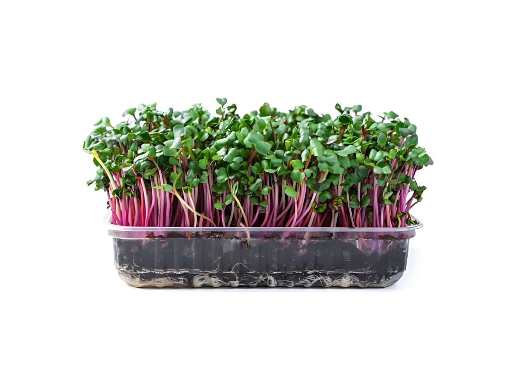 Použijte mělkou misku, truhlík nebo speciální podnos pro microgreens. Doporučujeme dobře propustný substrát nebo kokosovou rohož. -