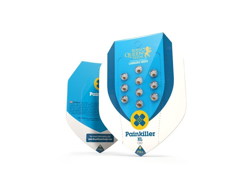 Painkiller XL je hybrid (75% sativa, 25% indica) vzniklý křížením Royal Highness a Juanita la Lagrimosa (Mexican/ Afghan x Queen Mother). Má chuť citronu a dieselu, je známá pro svůj vyvážený poměr THC a CBD (9% každého), což má za následek mírné euforické účinky a je vhodná pro terapeutické účely, především pro zmírnění chronické bolesti, úzkosti, stresu, deprese a svalových křečí, ale poskytuje cerebrální, jasnou hlavu, uklidňující, mírně euforické a povznášející pocity. V interiéru dorůstá do výšky 60-100 cm a produkuje 500-550 g/m² po 8 týdnech kvetení. Venku dorůstá do výšky 120-150 cm a produkuje 500-550 g/rostlina, sklizeň je koncem září/začátkem října.Doplňkové parametry