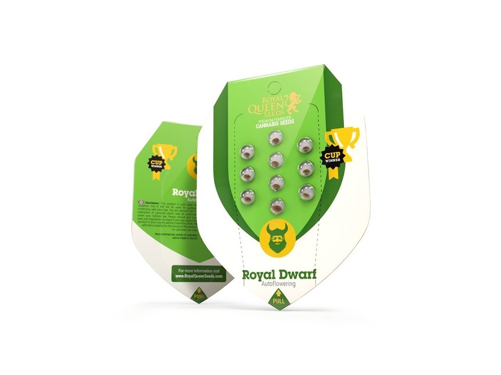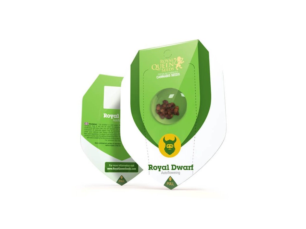 Royal Dwarf je hybrid (60% indica, 30% ruderalis, 10% sativa) vzniklý křížením Skunk a Ruderalis. Její chuť je pikantní, zemitá a kombinuje se s vůní benzínu a česneku a vyvolává euforické a povznášející účinky. Dorůstá do výšky 40-90 cm a produkuje 150-200 g/m² v interiéru a 30-80 g/rostlina venku po 9-10 týdnech. Hodí se pro LST (Low Stress Training).Doplňkové parametry