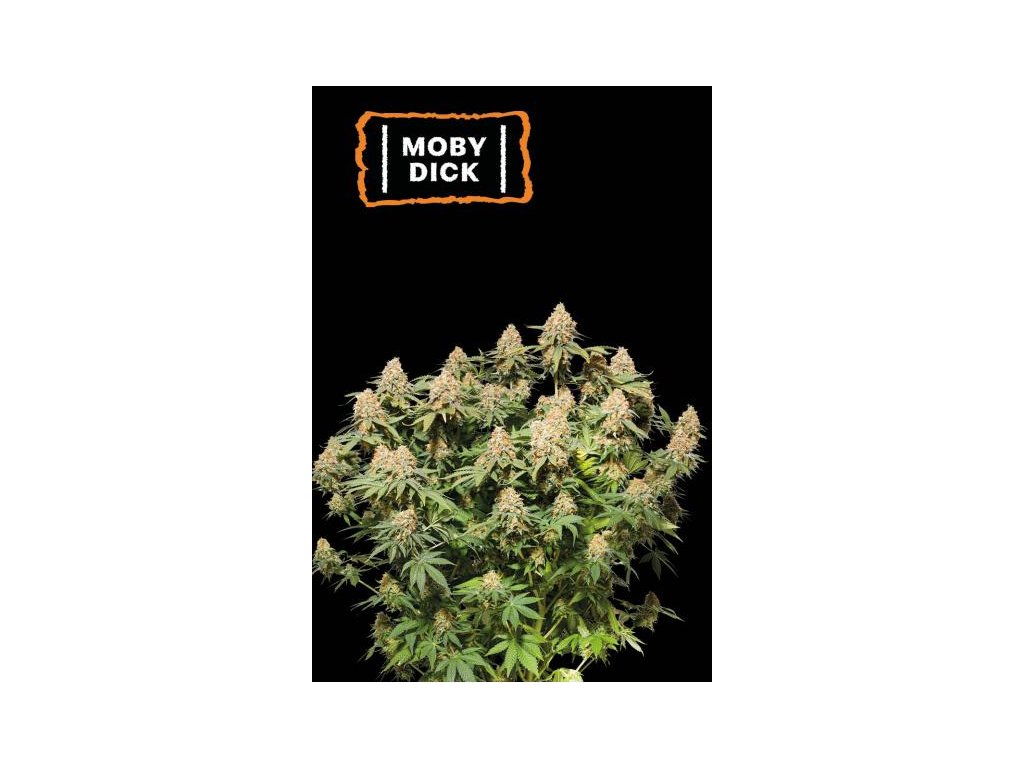 Moby Dick Feminized je hybridní odrůda, která vznikla zkřížením White Widow x Haze. Tato genetika spojuje sílu a výnosnost slavné White Widow s energizujícím efektem Haze, čímž vznikl silný a dlouhotrvající zážitek. THC dosahuje 20–26 %, což zajišťuje euforický, povzbuzující a kreativní účinek, který zároveň přináší příjemnou relaxaci. Chuťový profil je sladký, s tóny vanilky, cukrovinek a jemným citrusovým nádechem. Rostlina roste rychle a agresivně, což ji předurčuje k masivní produkci květů. Při indoor pěstování lze dosáhnout výnosu až 700 g/m² s dobou květu kolem 9 týdnů, zatímco v outdoor podmínkách dozrává v polovině až koncem října a dorůstá do impozantních rozměrů. Díky své pevné struktuře zvládne těžké květy, ale pro maximální výnos doporučujeme podpůrné mřížky. Silná, spolehlivá genetika pro ty, kteří hledají produkční hybrid s povzbuzujícím efektem a prvotřídním aroma.