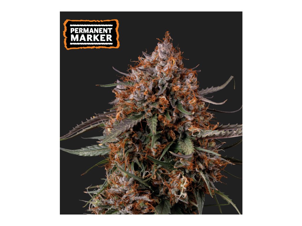 Permanent Marker Feminized je indika-dominantní hybrid, který vznikl zkřížením (Biscotti x Jealousy) x Sherb BX. Tato genetika přináší extrémní sílu s obsahem THC až 33 %, což ji činí jednou z nejsilnějších odrůd v katalogu. Účinek začíná euforickým náporem, který povzbuzuje kreativitu, a následně se přelévá do hluboké fyzické relaxace, která je ideální pro odpočinek a zmírnění stresu. Chuťový profil je výrazně "gassy" s tóny sladkých bonbonů, koření a pepře, zatímco aroma připomíná permanentní fixy, což odrůdě dalo její název. Doba květu trvá 9–10 týdnů, přičemž rostlina vytváří kompaktní, husté květy pokryté silnou vrstvou pryskyřice, které mohou získat modrozelené až tmavé odstíny. V indoor podmínkách může dosáhnout výnosů až 500 g/m², přičemž se dobře hodí pro SOG, SCROG, LST, FIM a Topping metody. Permanent Marker je ideální volbou pro zkušené uživatele, kteří hledají intenzivní efekt, jedinečný chuťový profil a extrémní produkci pryskyřice.