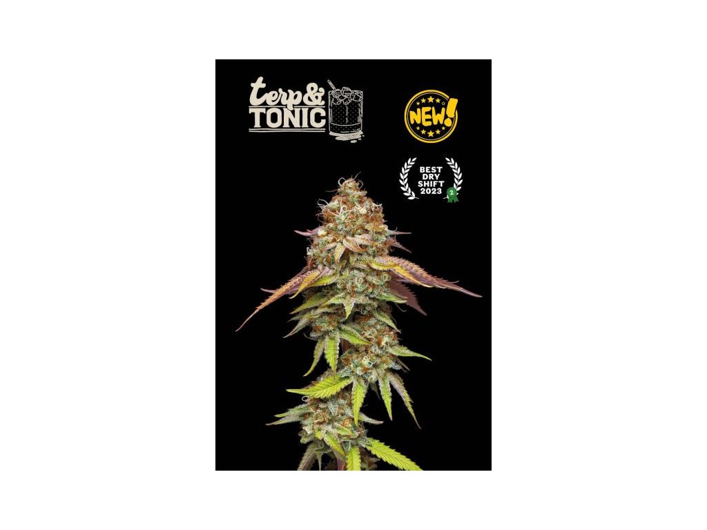 Terp & Tonic Feminized je sativa-dominantní hybrid, který vznikl zkřížením Freakum Zkittlez x Ghost Tonic. Tato odrůda přináší intenzivní citrusové aroma s jemnými sladkými a kořeněnými tóny, které připomínají multibarevné bonbony a jemný nádech skunku. THC dosahuje 20–26 %, což zajišťuje energizující a povzbuzující efekt, ideální pro kreativní aktivity a soustředění. Tento hybrid přináší dokonalou rovnováhu mezi uvolněním a mentální čistotou, což z něj dělá skvělou volbu pro všestranné použití. Doba květu trvá přibližně 9 týdnů, přičemž rostlina vytváří mohutné výnosy hustých, pryskyřičnatých květů. Díky své sativní dominanci má vysoký růstový potenciál, ale zároveň si zachovává kompaktnější strukturu, což usnadňuje její pěstování v indoor i outdoor podmínkách. Terp & Tonic je ideální volbou pro pěstitele hledající silný a osvěžující hybrid, který nabízí skvělý chuťový zážitek a dlouhotrvající efekt.