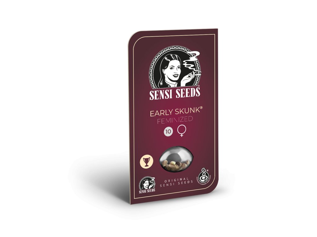 Early Skunk je 65 % indika / 35 % sativa hybrid, vzniklý křížením Skunk #1 a Early Pearl. Tato odrůda je známá svou odolností vůči plísním a chladu, což ji činí ideální pro venkovní pěstování v mírném klimatu. Rostlina dosahuje výšky až 300 cm a kvete za 55–65 dní. Produkuje vysoké výnosy hustých, pryskyřičnatých palic s typickým skunkovým aroma. Účinky jsou vyvážené, kombinující tělesnou relaxaci s mentální stimulací.Doplňkové parametry