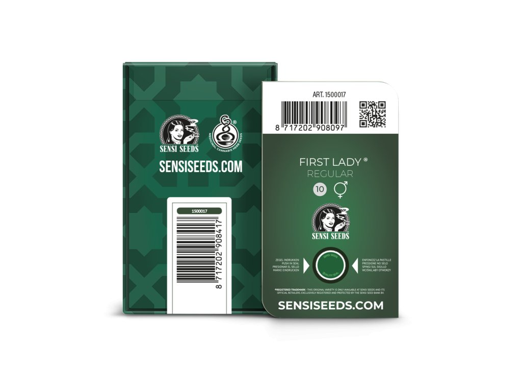 First Lady je 95 % indika, pocházející z Afghánistánu a Pákistánu. Rostlina dosahuje výšky 100–130 cm, s dobou kvetení 45–50 dní. Výnos činí až 100 g na rostlinu. Aroma je kořeněné s tóny hašiše, účinky jsou silně relaxační a sedativní. Vhodná pro pěstitele hledající klasickou indiku s vysokou produkcí pryskyřice.Doplňkové parametry