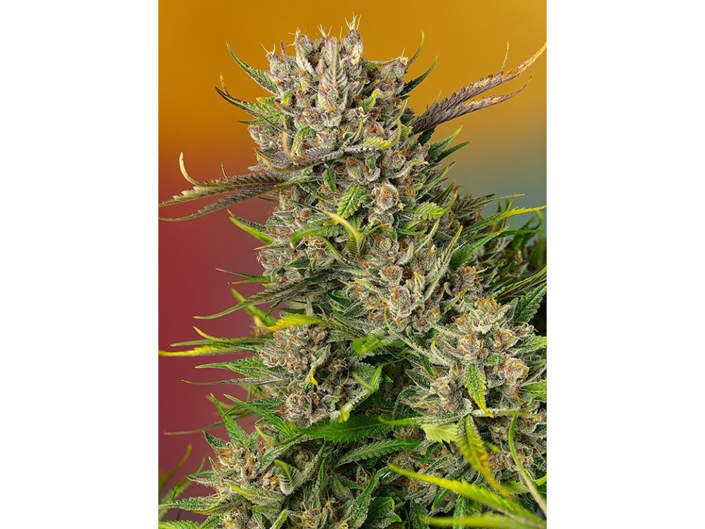 Rychle kvetoucí hybrid s vysokým obsahem THC a sladkým ovocným aroma.