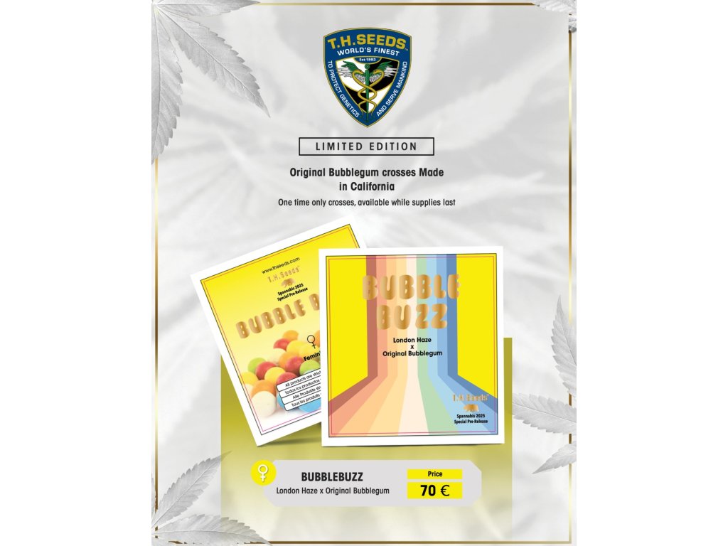 BubbleBuzz od T.H. Seeds je indika-dominantní odrůda s sladkým ovocným aroma. Bližší informace o genetice, výšce, době kvetení, obsahu THC, výnosu a účincích nejsou k dispozici.Doplňkové parametry