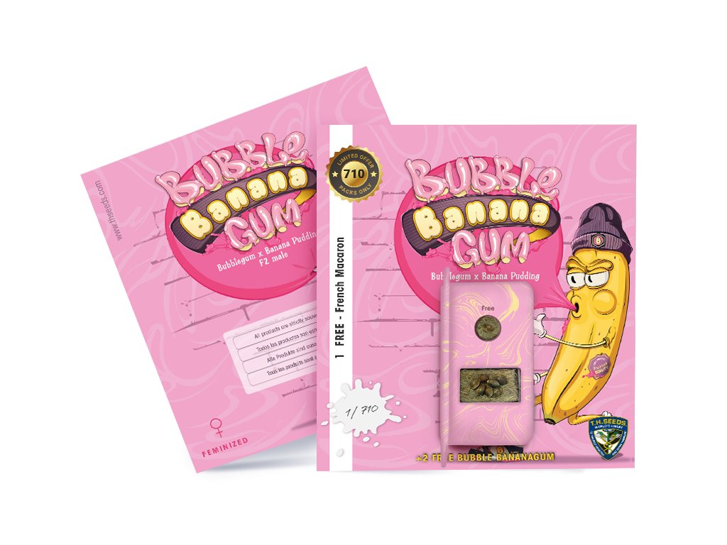 Feminized, 55% Sativa, 45% Indica – sladká banánová chuť s bublinovou gumou.