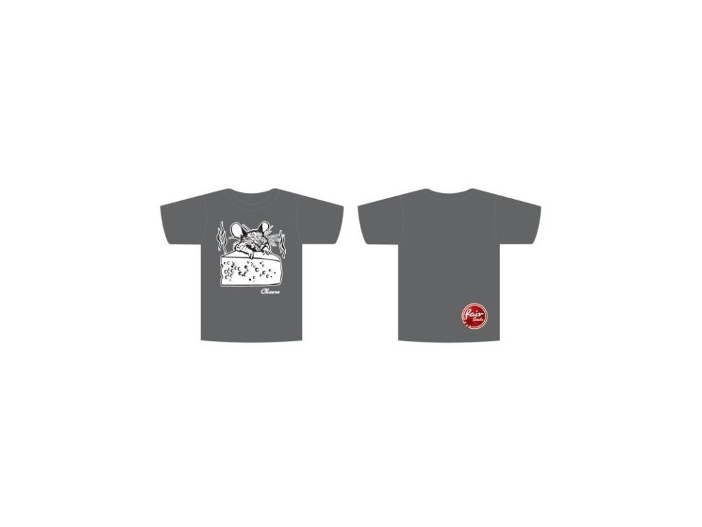 Pánské tričko ze 100% bavlny. Barva: šedá. V předu velký nažehlovací obrázek sýru a myši s nápisem Cheese. Zadní strana s logem Fair Seeds (vpravo dole).