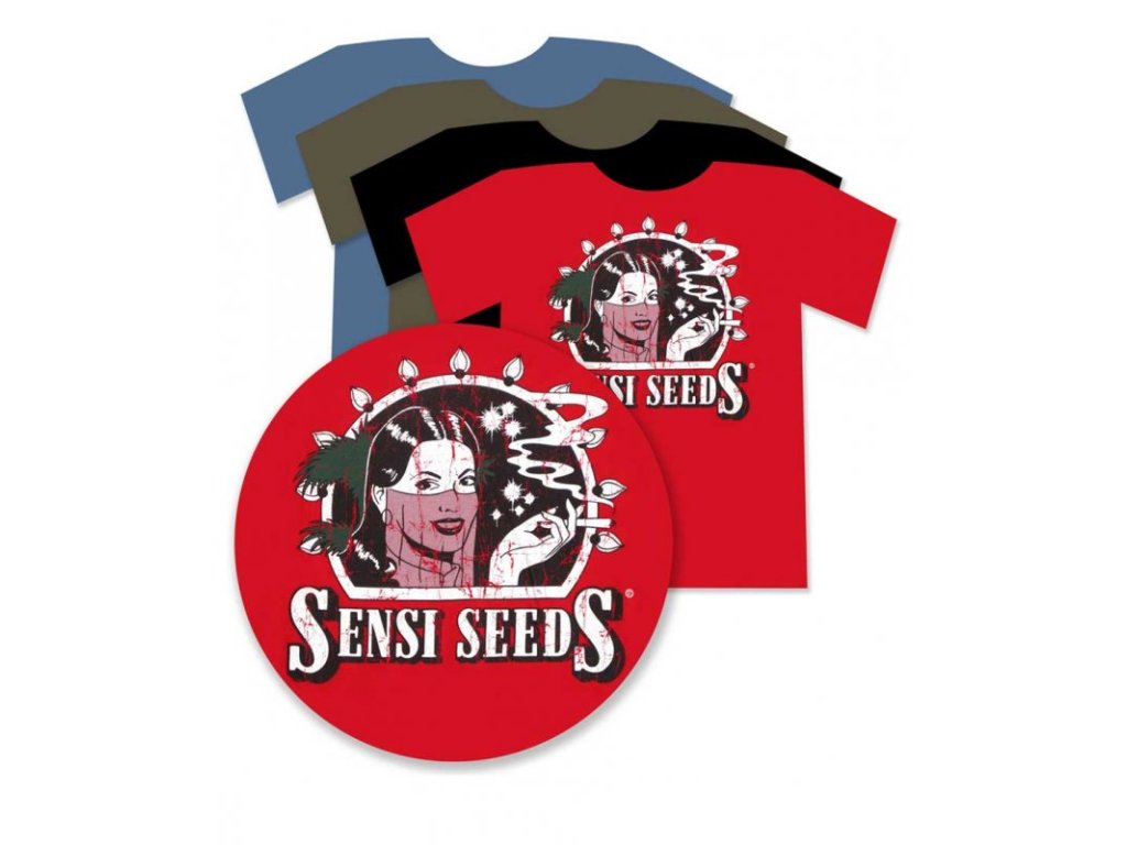 Modré tričko s opraným efektem a jemným logem Sensi Seeds pro uvolněný vzhled.